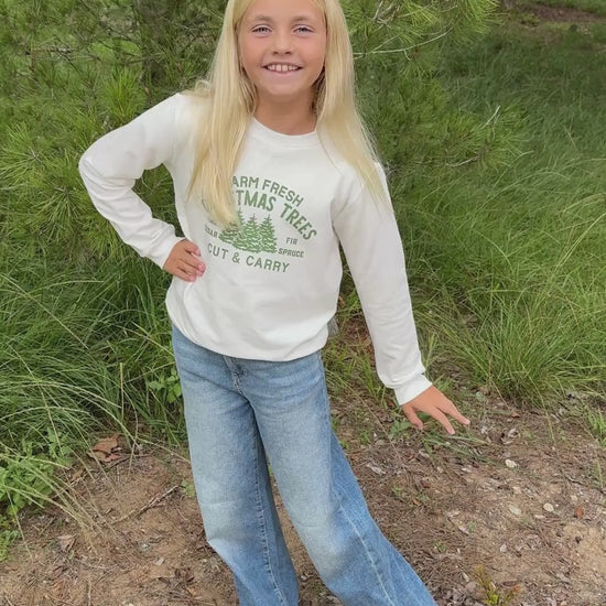 Kids Christmas Tree Farm Premium Graphic Sweatshirt